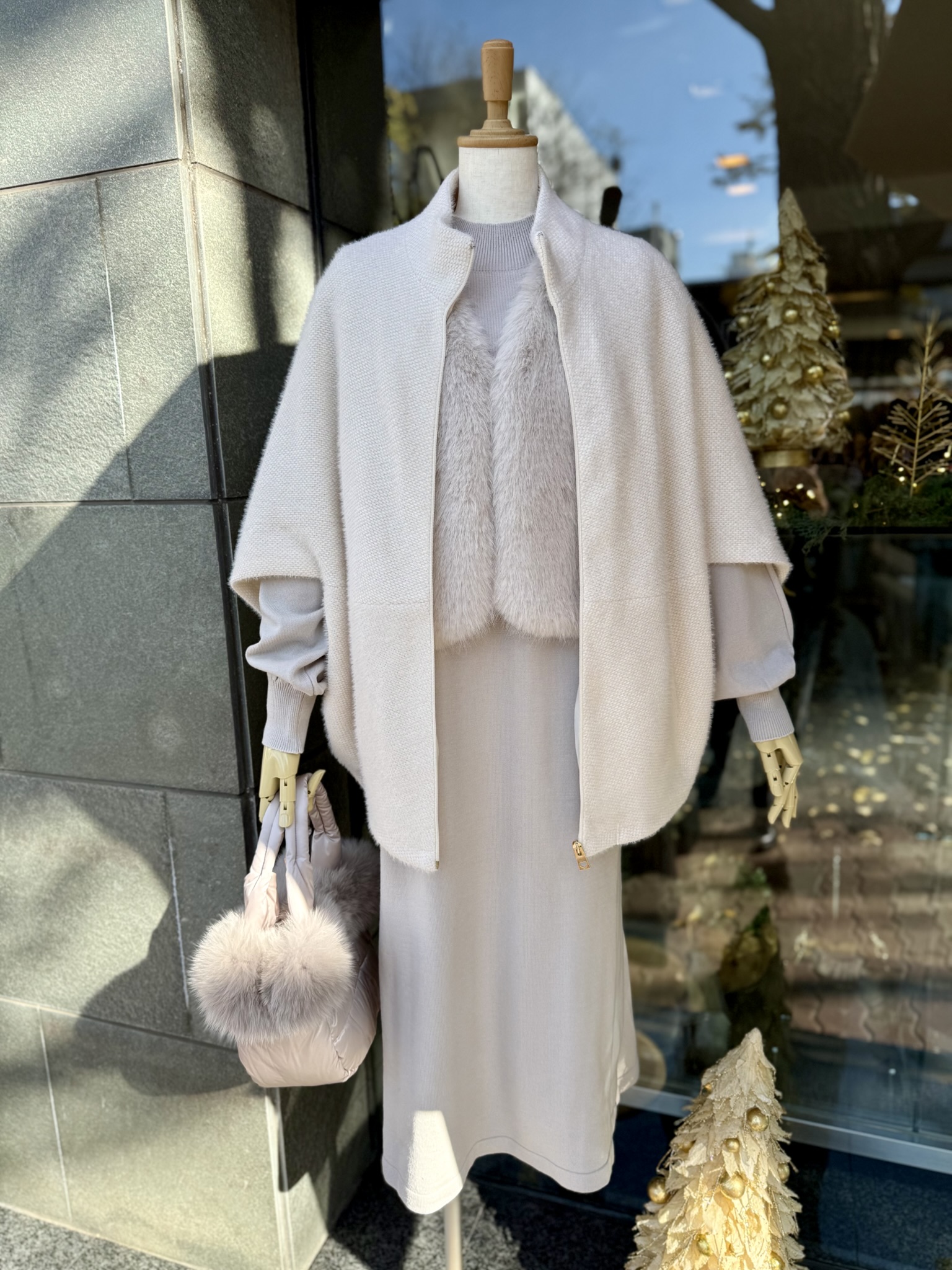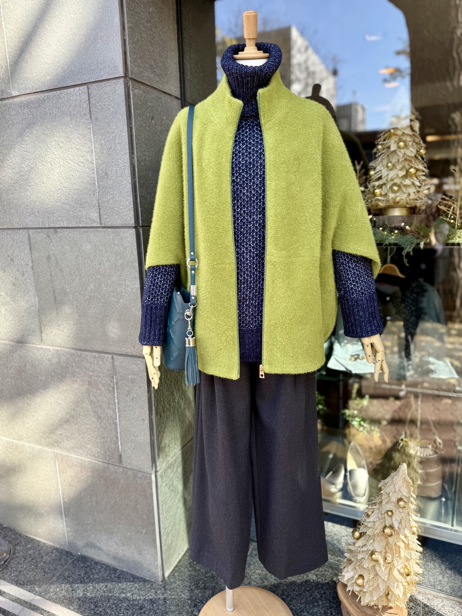 今週は、気分が上がる綺麗色のケープ風コートをご紹介します。
