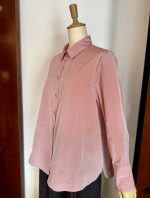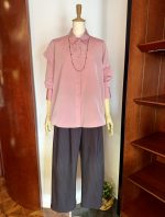 本日、進藤様には、光沢感が上品なシャンタン素材の長袖ブラウスを