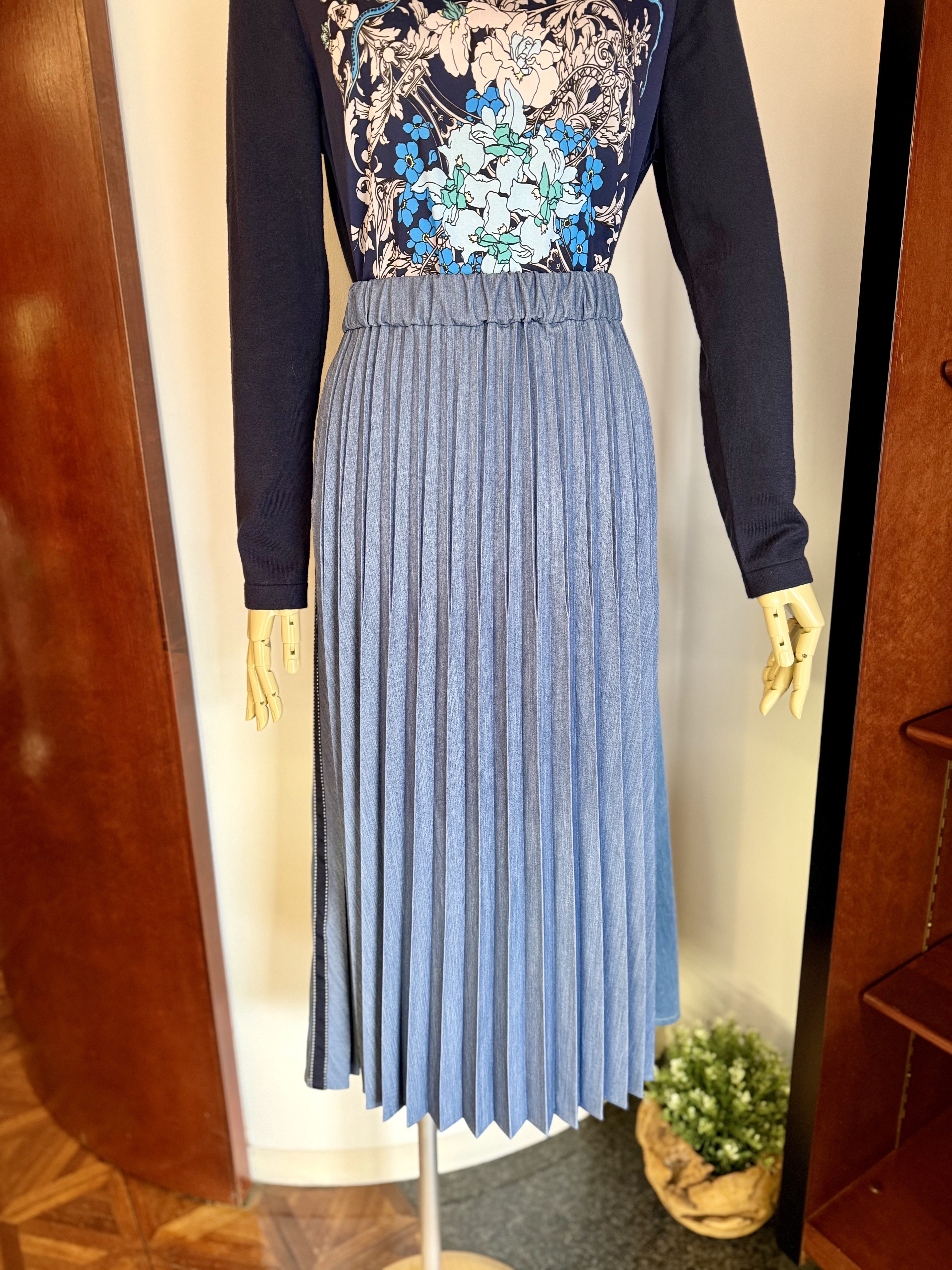 ■バックプリーツソフトデニムスカート Any ¥18,700